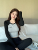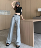 X346 design sense all-match long-sleeved T-shirt smiley face print stretch casual bell-bottom pants
