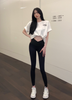 X418 เสื้อยืดคอกลมแขนสั้นปักตัวอักษรฤดูร้อน + เย็บกระเป๋าเฉียงเอวสูงทรงหลวมบางกางเกงกล้วย