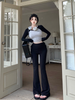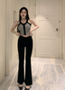 X434 ความรู้สึกการออกแบบจับเจ่าผ้าม่านกางเกงขากว้างผู้หญิงเอวสูงหลวมบางตรงกางเกงลำลอง