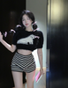 X152 Bow polo collar shirt versatile black celebrity culottes