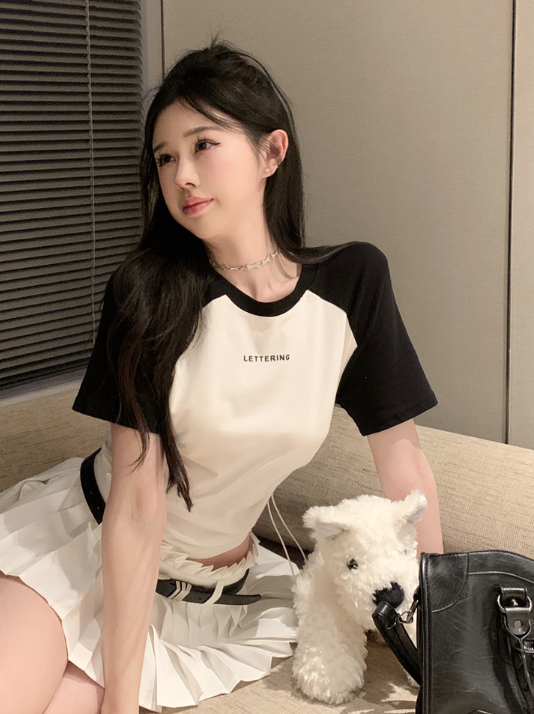 X483 ใหม่ shot raglan sleeve letter เสื้อยืดผู้หญิง