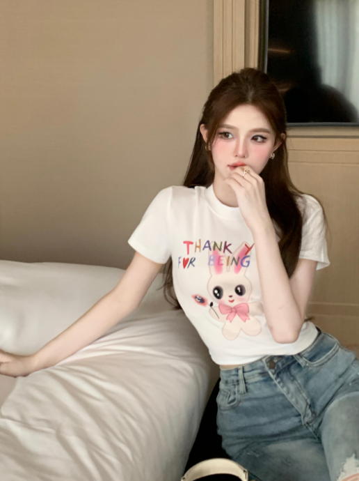 X501 ฤดูร้อนใหม่เสื้อยืดกราฟฟิตีกระต่ายน้อยสีขาว