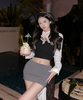 X148 สปริงดีไซน์เย็บสีตัดกันใหม่ท่อนบนเสื้อท่อนล่าง