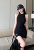 X416 ฤดูร้อนใหม่อารมณ์บางสีทึบชุดกระโปรงหญิง